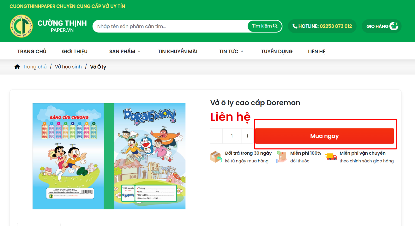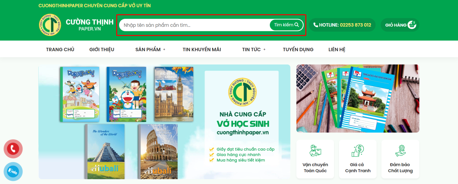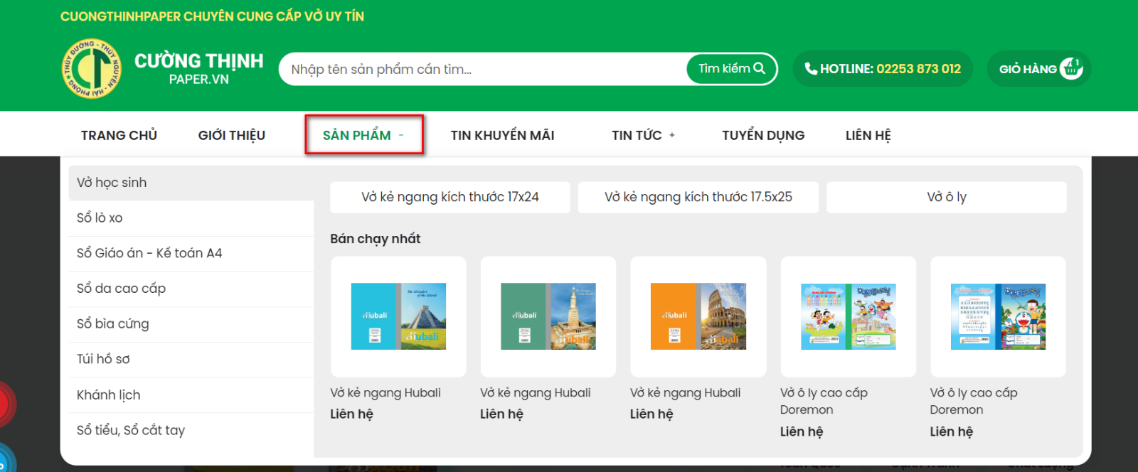 Bước 1: Bạn có thể truy cập vào website https://cuongthinhpaper.vn/ và thực hiện chọn sản phẩm thông qua các cách đặt hàng đơn giản sau: