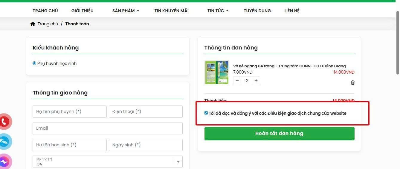 - Lựa chọn hình thức thanh toán và số lượng sản phẩm cho đơn hàng của mình