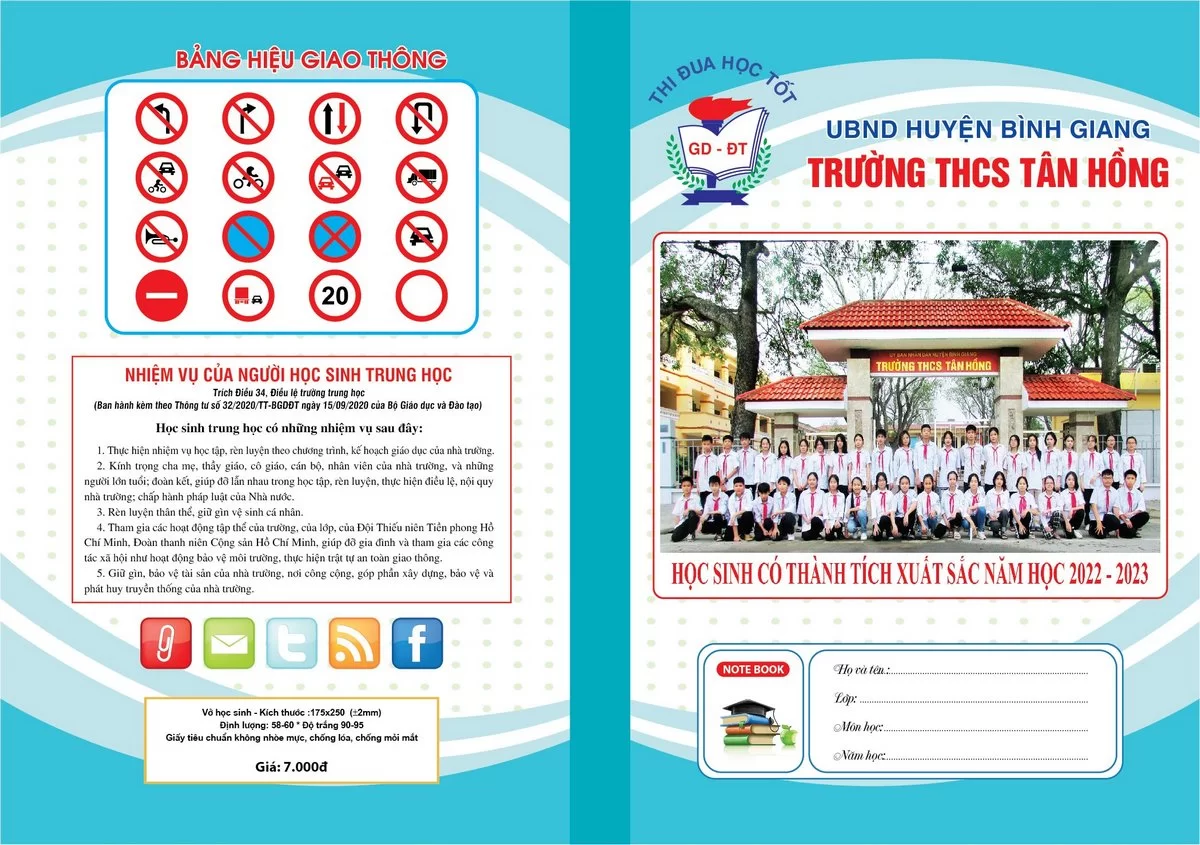 Vở kẻ ngang Trường THCS Tân Hồng (Kẻ ngang, 80 trang)